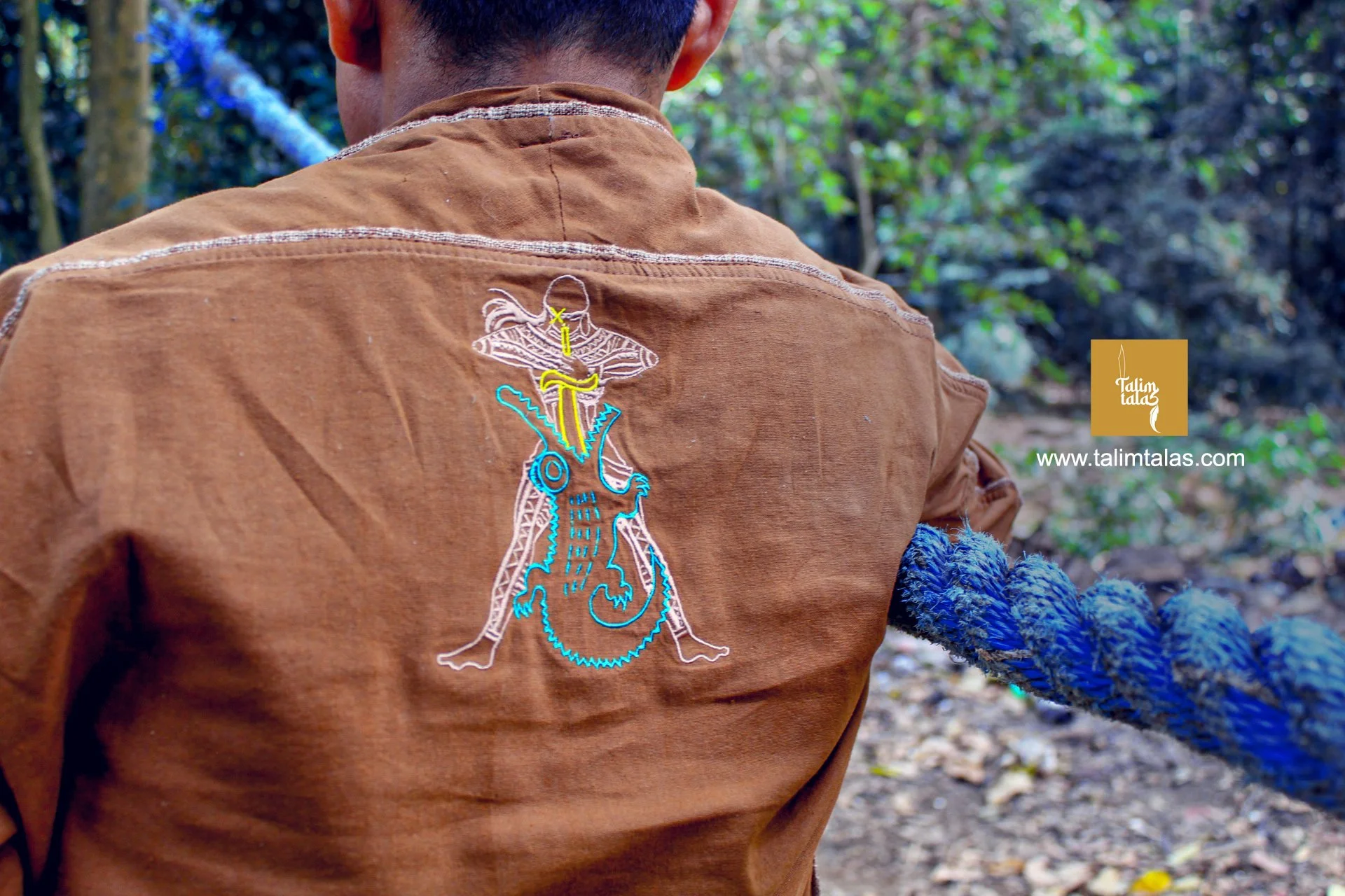 The back unveils a powerful, masterfully embroidered scene: a Warrior slaying a Crocodile (Buwaya). In Filipino culture, the buwaya has long symbolized greed and corruption. Here, the imagery is unmistakable—justice triumphs, integrity prevails.